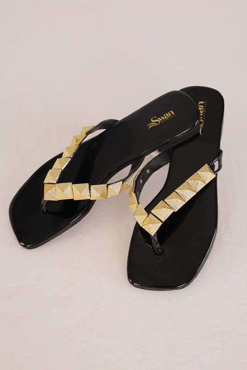 Set on exquisite patent soles adorned with hand-beaten metal, these sandals boast a glossy finish that exudes elegance with every step.